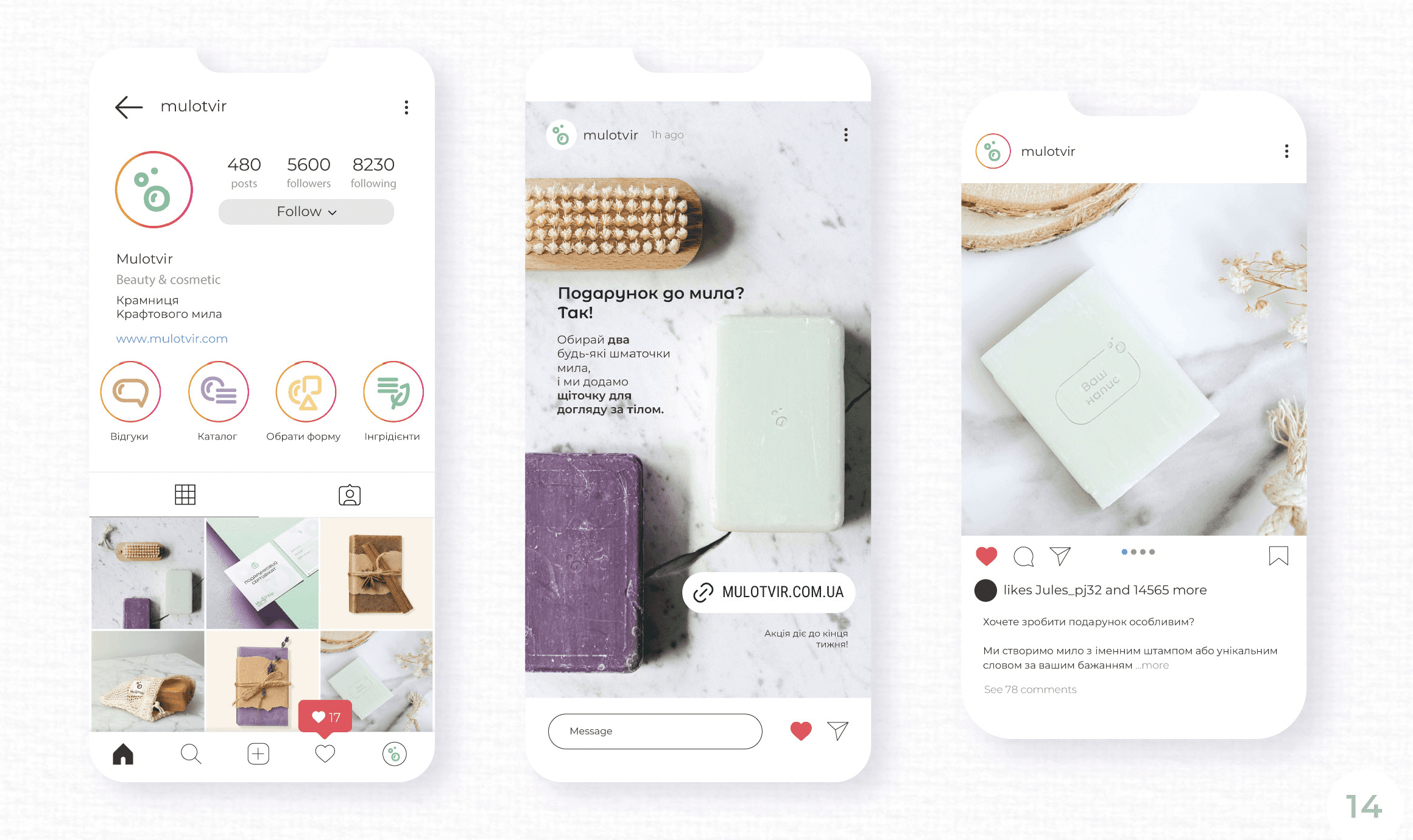 I have provided creative direction for various brand identity projects, including Mylotvir, a craft soap brand by Sуehremet V. My work included supervision, idea generation, feedback on brand elements, and ensuring coherent storytelling and a connection with the targeted customer.